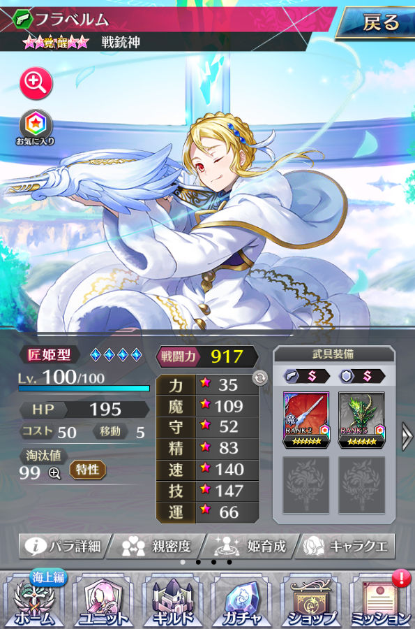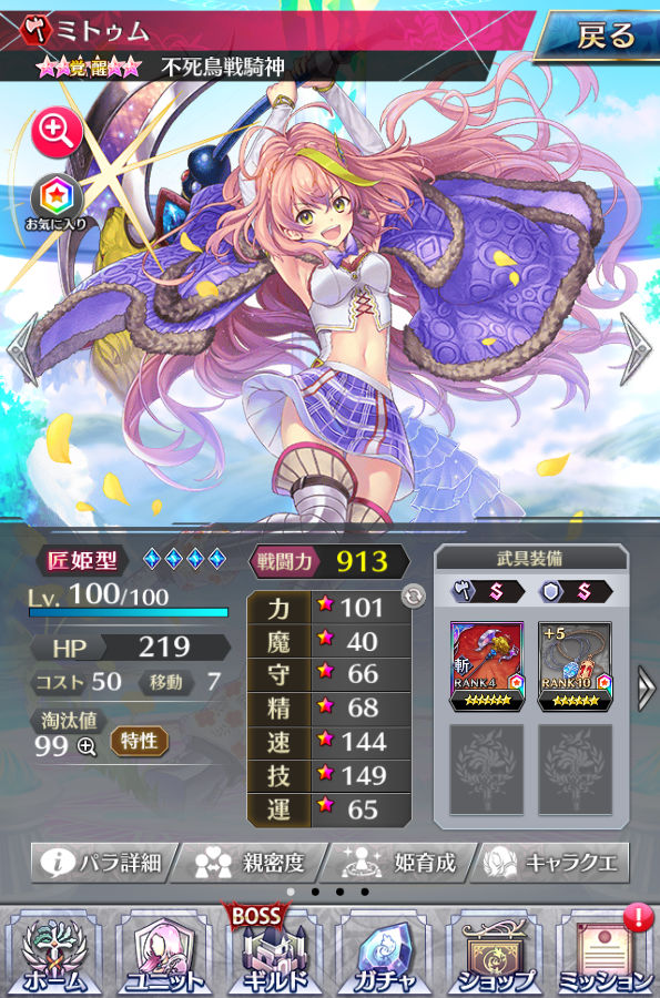 覚醒対象は旧ユニットという事でそもそもステータスの上限が低いので、最新のユニットに比べるとステータスに星はつけやすいです。銃・杖は結構厳しいどころか絶対無理よね?というユニットも中にはいますが、剣・斧・槍・弓ユニットはそれほど転生しなくてもHP以外全てに星をつける事が出来ると思います。HPだけはまず無理なので私は無視する事にしてますけどね?