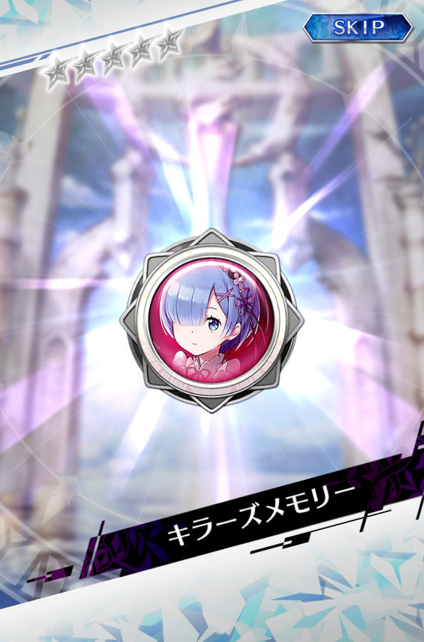 リゼロコラボはイベントの開催期間が長く、コラボユニも何回かに分けて追加があったせいか、キラメモをゲットするチャンスが2回ありました。とは言え何回チャンスがあったところでコラボユニもその分いつもと比べて多いので、確定チケで引いたユニットのキラメモはまず出ないだろう…と思っていましたが、なんと2回ともレムと言う神引き!