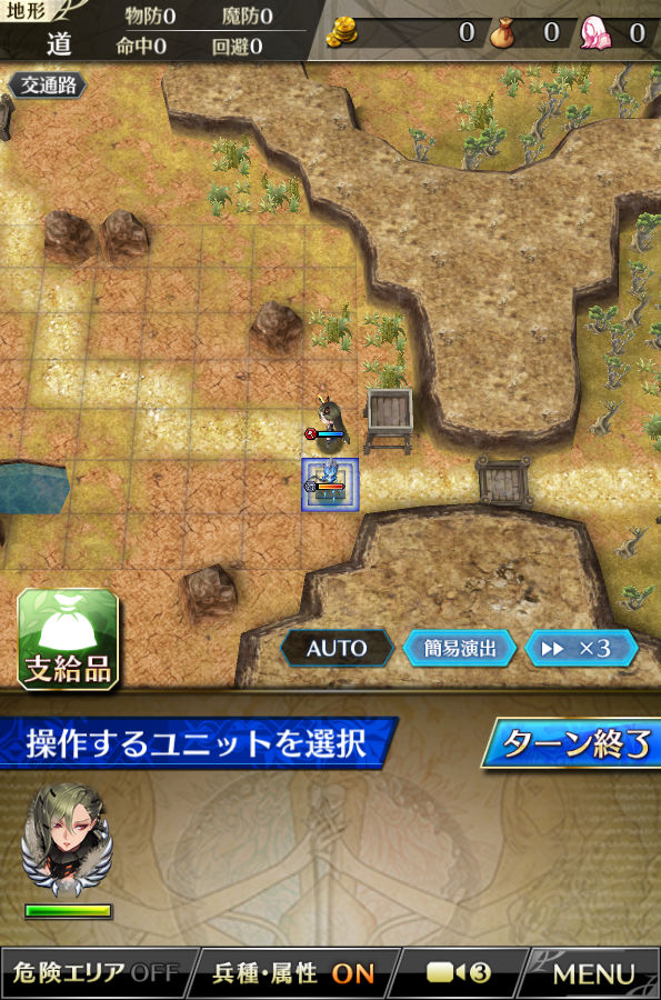 確かバフは持ってなかったと思うので、初期位置の敵を倒してみます。