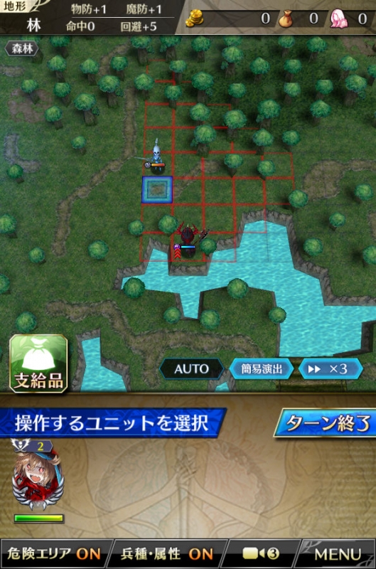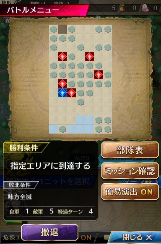 3ターン目に画像の位置から初期配置の敵を倒すと次のターン開始時には次のマップのようになるかと思います。