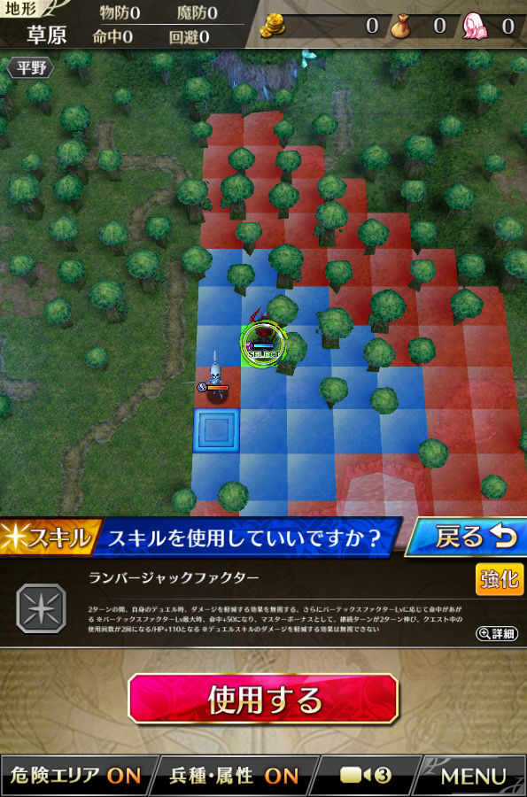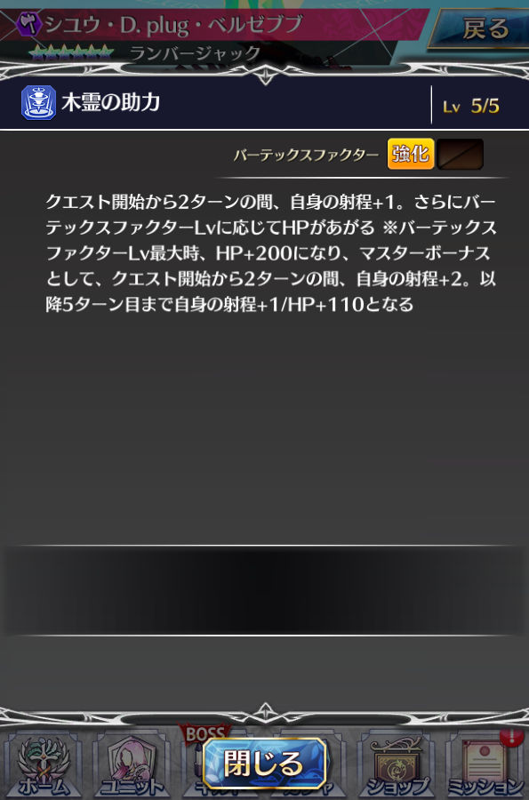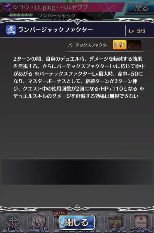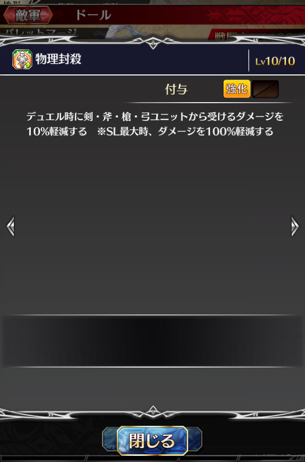 このクエストの敵は「物理封殺」というスキル持ちで剣・斧・槍・弓ユニから受けるダメージをなんと100%カットしやがります。て事でシユウのスキルを確認すると、もうそれ使うしか無いわなっていう非常にわかりやすいスキルがあります。