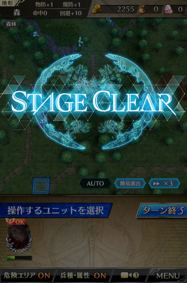 後は反撃で倒してくれるので残った敵がいたらそれを片付けてステージクリアです。
